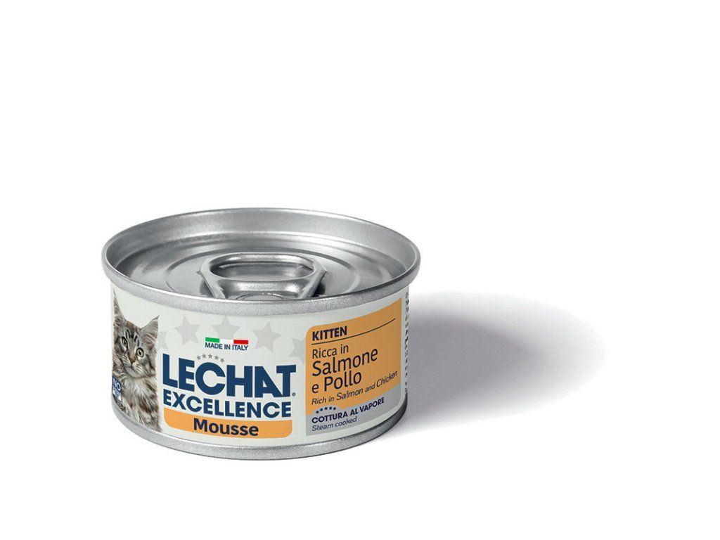 Monge LeChat Excellence Mousse Kitten Losos a kura je kompletné krmivo pre mačiatka. Jemná a delikátna pena zvyšuje chutnosť produktu. Receptúra je vyrobená s lososovým olejom, prirodzeným zdrojom omega-3 mastných kyselín, na podporu vývoja mozgu. Bez pridaných farbív a konzervačných látok.