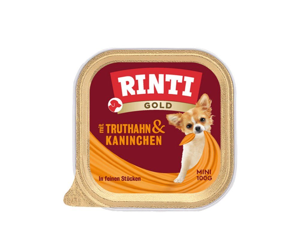 Rinti Gold Mini je lahodná paštéta vyrobená z kvalitných druhov mäsa v jemnej textúre, ktorej neodolá Váš gurmánsky pes malého plemena. Kompletné krmivo pre najmenších psov. Mäso a vnútornosti: 65 %. Prirodzene bez mechanicky separovaného mäsa, sóje (rastlinné bielkovinové extrakty) a umelých farbív a aróm. Rinti Gold – pretože váš pes má jednoducho cenu zlata.