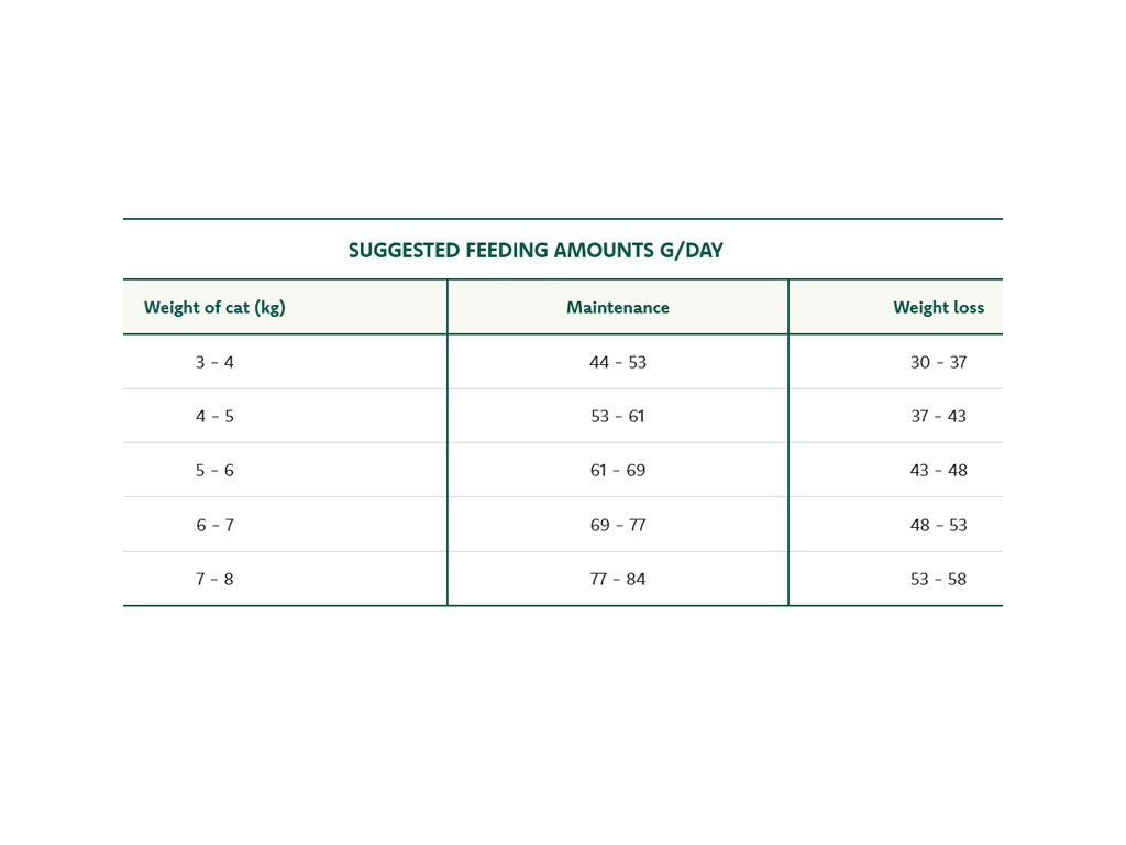 Odporúčané dávkovanie: Postupne prejdite na Oasy z iného krmiva počas 7 dní. Odporúčaná denná dávka sa môže líšiť v závislosti od množstva fyzickej aktivity zvieraťa. Vždy sa uistite, že vaša mačka má prístup k čistej, čerstvej vode. Uchovávajte na chladnom a suchom mieste. Tabuľku odporúčanej dennej dávky v gramoch na základe aktuálnej váhy dospelej nájdete v obrázkoch produktu.