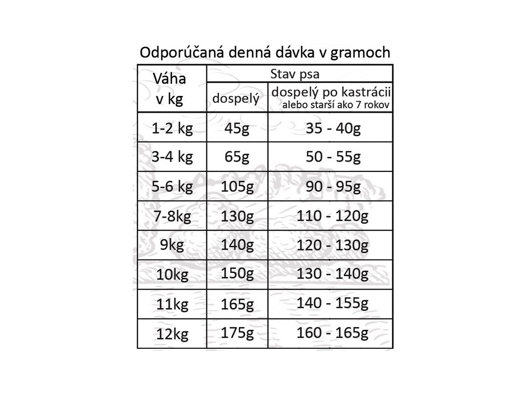 | Vlastnosti krmiva: | Bez obilnín, Monoproteínové |