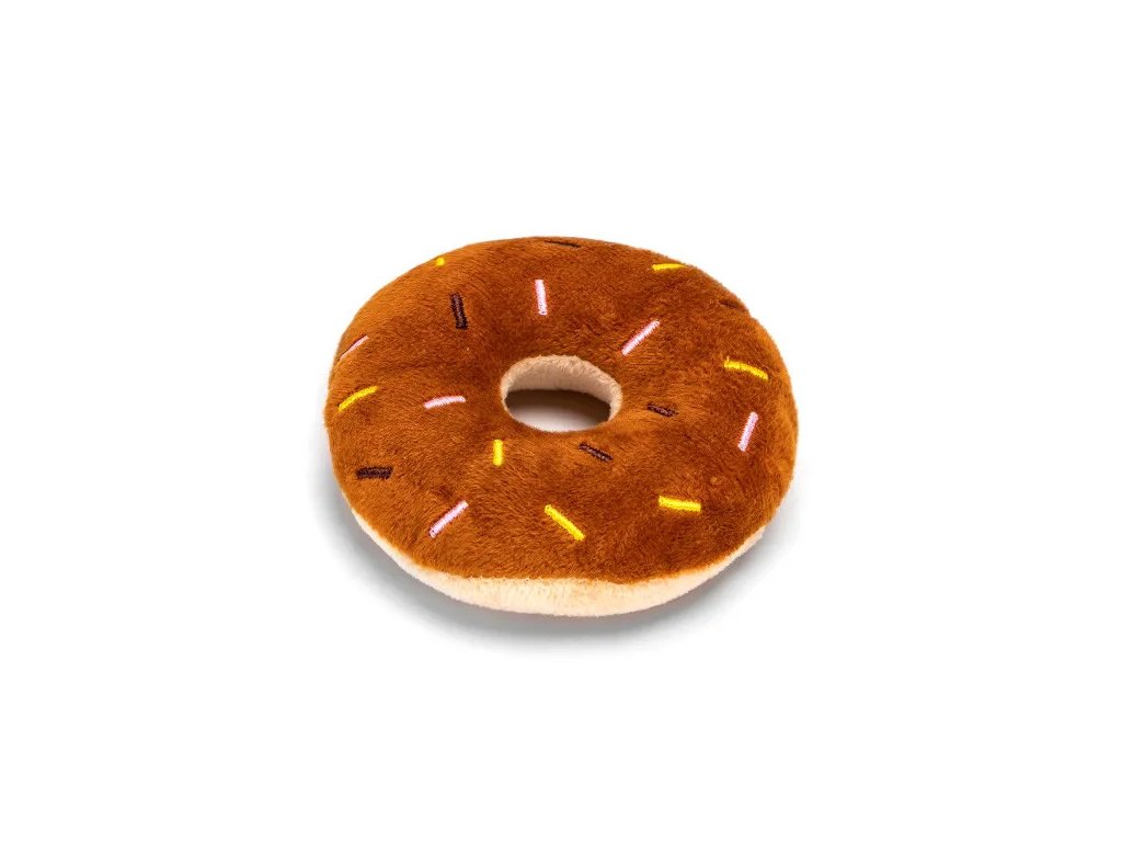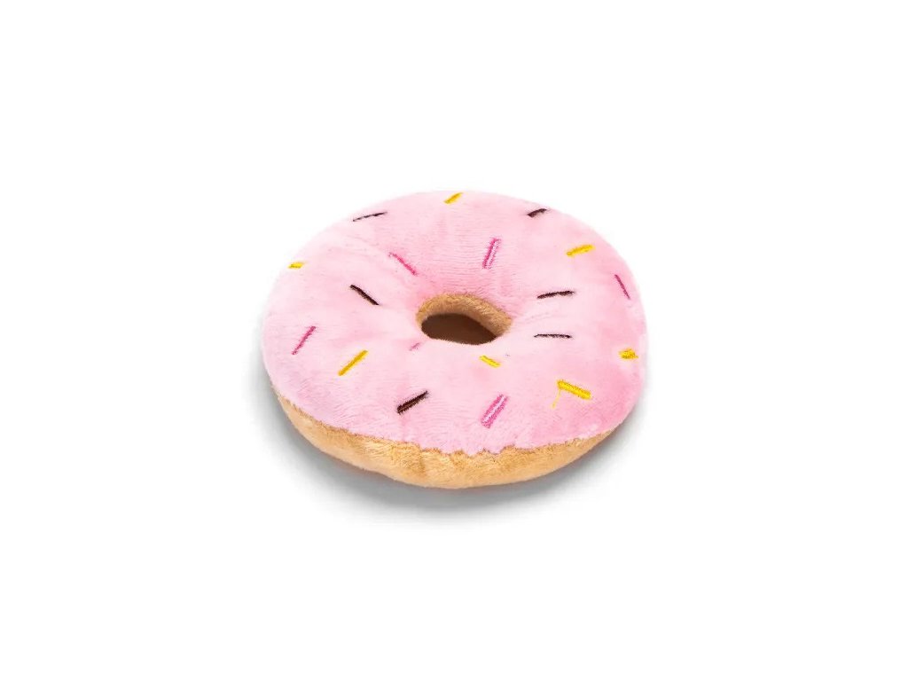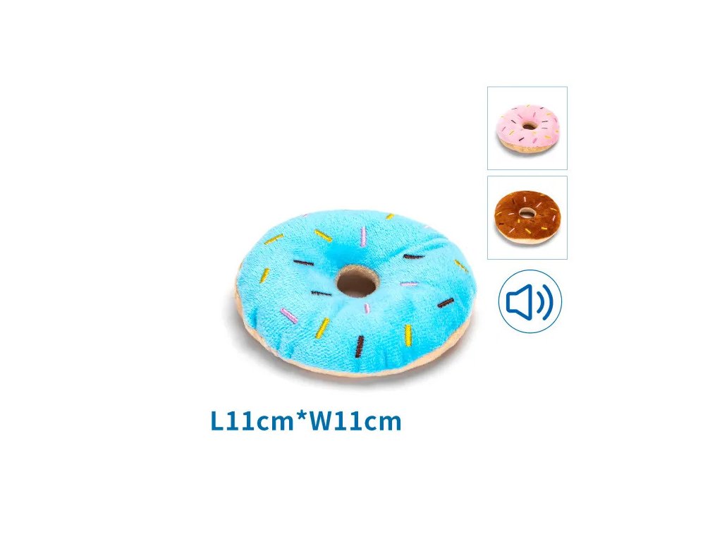 Plyšová hračka pre psa Nobleza - donut 11cm - je ideálnym jemným spoločníkom pre všetky plemená psov. Pri stlačení hračka píska.Materiál: plyš