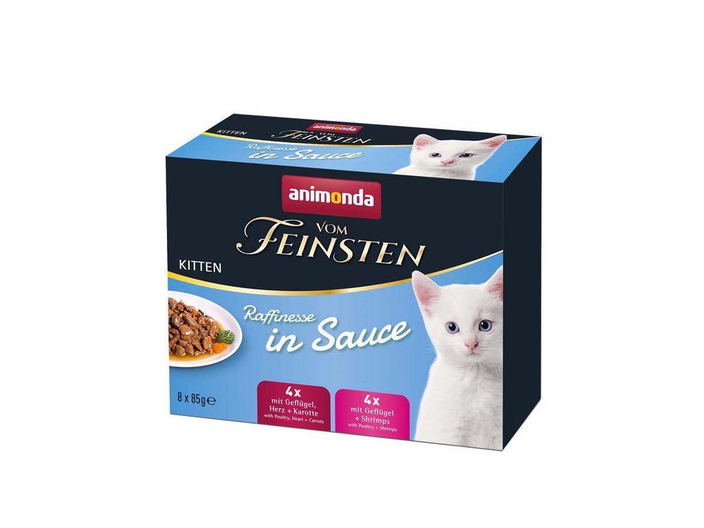 Vom Feinsten Raffinesse Kitten Mix 8x85g obsahuje dva druhy kapsičiek, ktoré predstavujú lahodnú, zdravú a nutrične vyváženú stravu pre mačiatka v raste do 1 roka. Malé mačiatka veľmi rýchlo rozvíjajú ich preferenciu chuti. Jemné malé kúsky mäsa v lahodnej omáčke umožňujú rozvíjať chuťové zmysly mačiatka a zároveň spĺňajú všetky požiadavky na ich zdravý vývoj. Po dosiahnutí 1. roku života odporúčame prejsť na kapsičky Rafiné Adult.