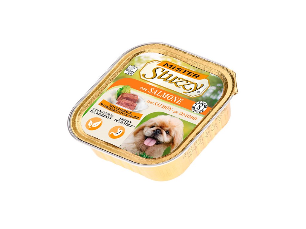 Stuzzy Mister - losos je strava varená na pare, bez farbív alebo konzervačných látok;pripravené v želé. Obsahuje vitamíny a minerály užitočné na podporu zdravej pokožky a lesklých chlpov a na zabezpečenie účinného vstrebávania živín.