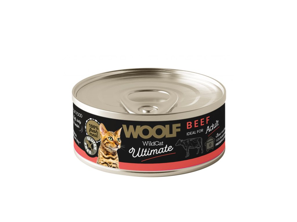 Woolf WildCat Ultimate - Hovädzia paštéta je kompletná strava pre dospelé mačky vo forme chutnej na jemno pripravenej paštéty.