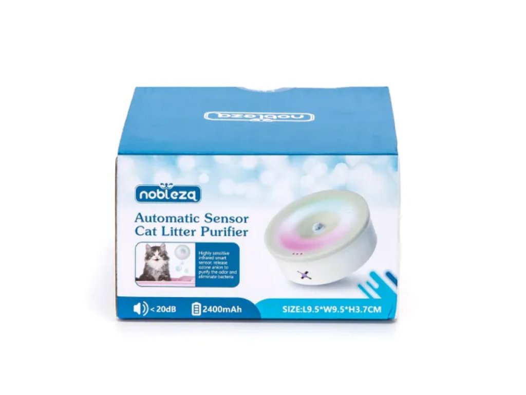 Automatický eliminátor zápachu a baktérii v toalete Nobleza je malé zariadenie so vstavanou 2400mAh batériou. Zariadenie je určené na umiestnenie do mačacej toalety. Obsahuje infračervený senzor, ktorý zaznamená Vašu mačku v záchodíku a následne po opustení záchodíka spustí proces vypúštania aniónu ozóna na odstránenie zápachu a baktérii v toalete.