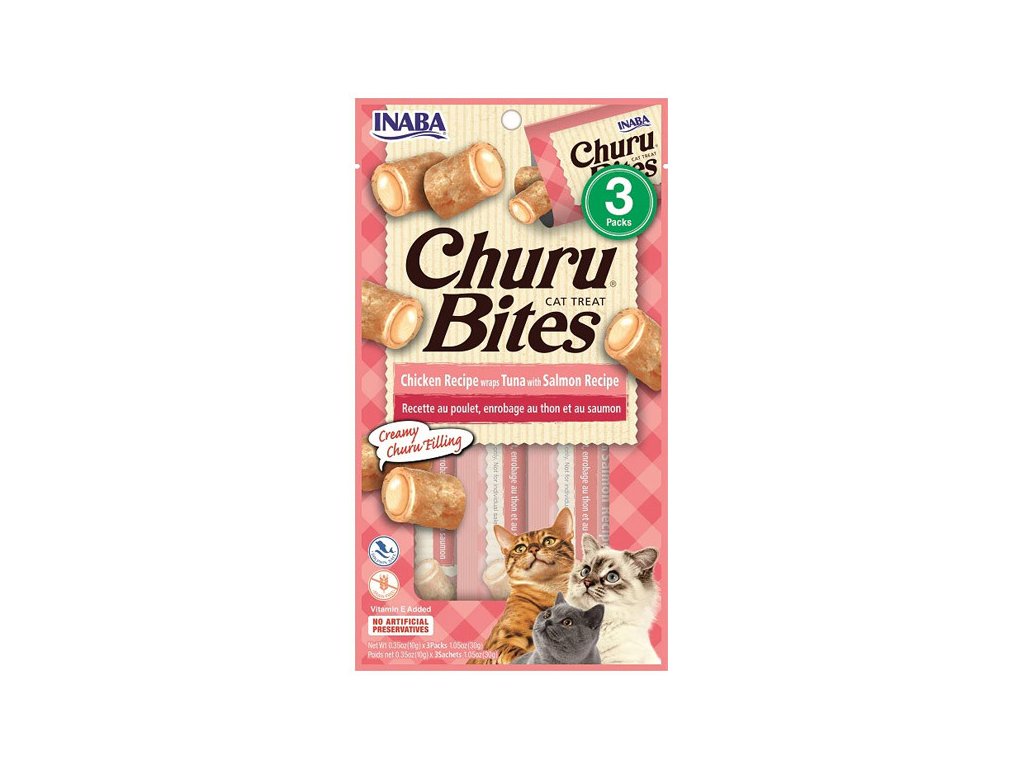 Pamlsok Inaba Churu Bites cat Kura s tuniakom a lososom 3x10g