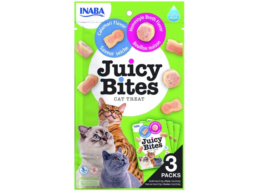 Pamlsok Inaba Juicy Bites cat Vývar a kalmáre 3 x 11,3g