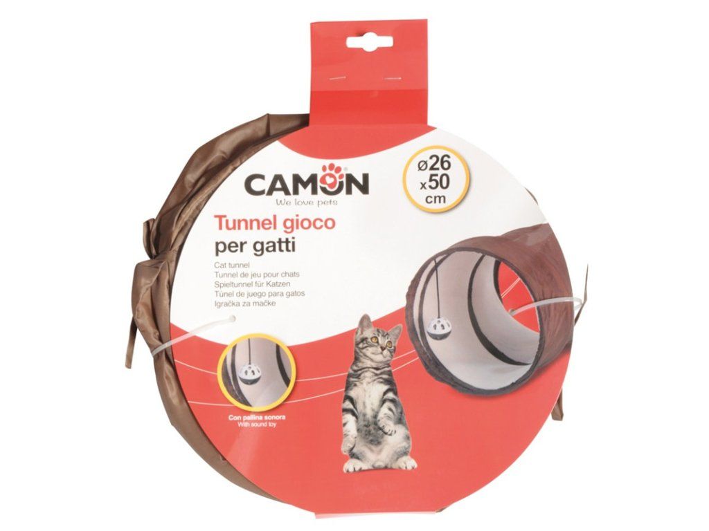 Modulárny tunel pre mačku Camon v hnedej farbe zabezpečí hodiny zábavy pre mačky bez rozdielu veku. Stimuluje zvedavosť a uspokojuje potrebu hrania sa Vašej mačky. Hebky zamatový povrch sa hodí do interiéru domácnosti a hrkajúca hračka zas povzbudzuje inštinkty Vašej mačky.
