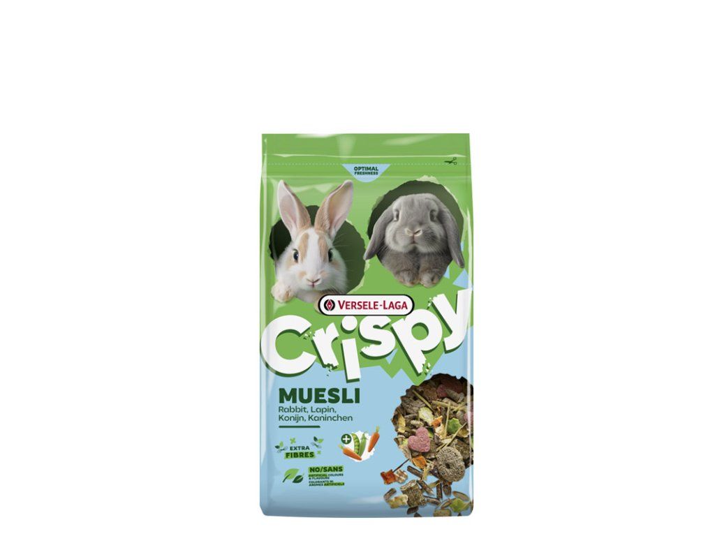 Versele Laga Crispy Muesli Rabbits je kompletné chutné krmivo vysokokvalitnej zmesy s vysokým obsahom vlákniny pre (trpasličie) králiky. Zmes s vysokým obsahom vlákniny pre dobré trávenie a zdravé zuby. Extra fibres - pridaná vláknina pre lepšie trávenie a dentálnu starostlivosť. Obohatené peletami "Happy & Healthy" pre optimálnu kondíciu.